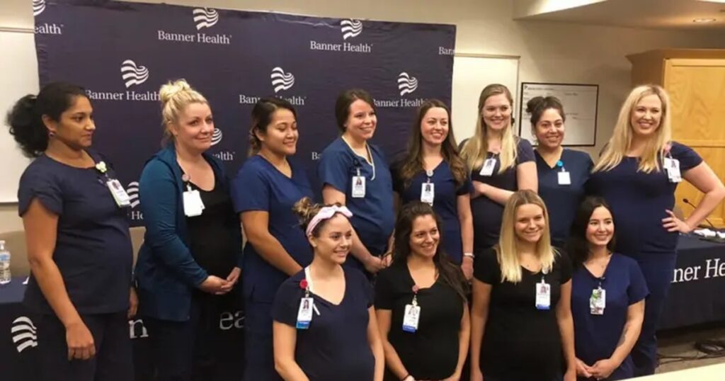 En la primavera de 2018, un hecho inesperado llamó la atención en el Centro Médico Banner Desert, situado en Mesa, Arizona. Una tras otra, 16 enfermeras de la Unidad de Cuidados Intensivos anunciaron estar embarazadas. Esta coincidencia no pasó desapercibida, ya que representaban cerca del 10% del personal de enfermería de la unidad. Rápidamente, la noticia se volvió viral y fue replicada por medios internacionales, asombrados por la simultaneidad del fenómeno.