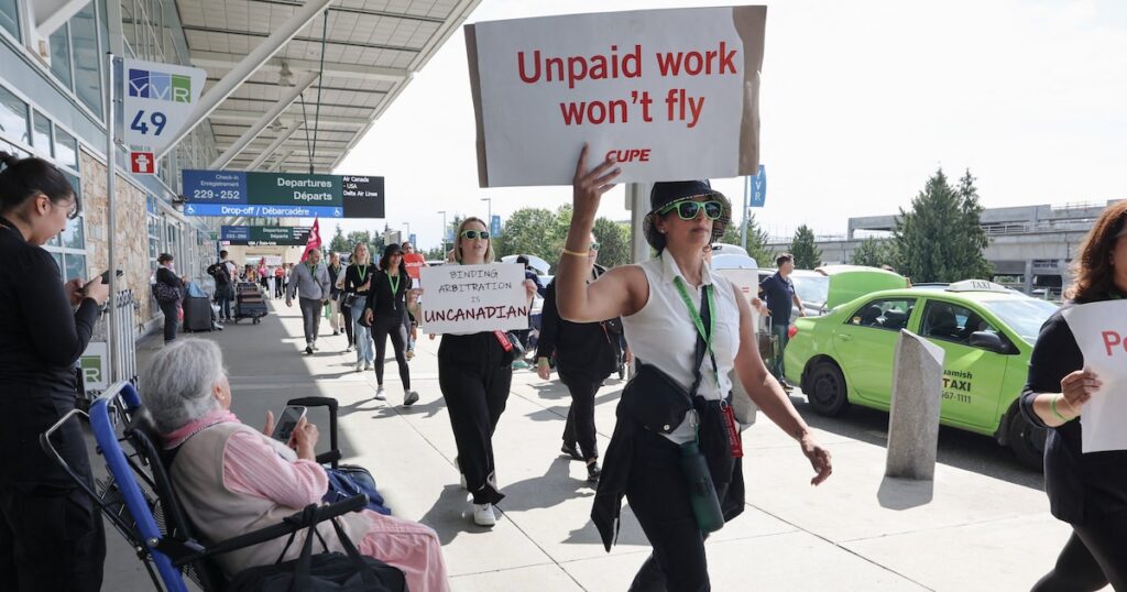 “El presidente nacional de CUPE, Mark Hancock, dejó claro que nuestros miembros NO volverán al trabajo hasta que el gobierno ordene a Air Canada regresar a la mesa de negociaciones, donde podamos alcanzar un acuerdo provisorio sujeto a votación por parte de nuestros miembros”, expresó.