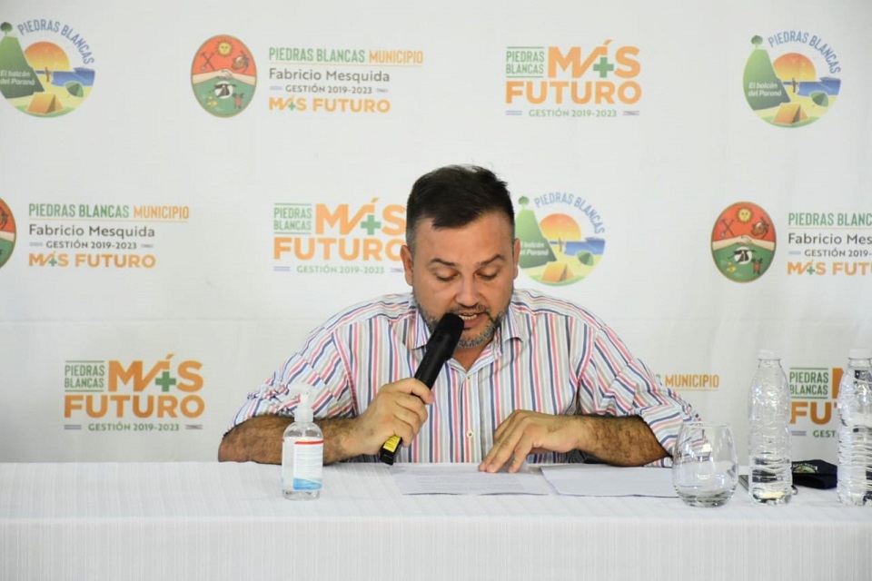 Este lunes el presidente municipal, Fabricio Mesquida, realizó la apertura de la Sesiones Ordinarias del Concejo Deliberante de la Municipalidad de Piedras Blancas. El acto se desarrolló en el Polideportivo Municipal “Fabio Goró”, donde el intendente realizó un repaso de las obras, medidas adoptadas y gestiones realizadas en las distintas áreas durante un año atípico como lo fue el 2020.
