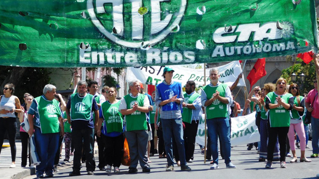 En Plenario de secretarios generales, ATE Entre Ríos resolvió este viernes que en la paritaria salarial reclamará una suba del 23 por ciento. En rigor, decidieron que una oferta plausible de ser aceptada por el gremio en las negociaciones con el Gobierno provincial “no debe ser menor a lo acordado en paritaria 2017, que fue del 23 por ciento”, precisó Muntes. Y agregó que la misma deberá incluir la cláusula gatillo. “Esta va a ser la propuesta que llevará oficialmente ATE a las paritarias”, subrayó el secretario general de ATE.