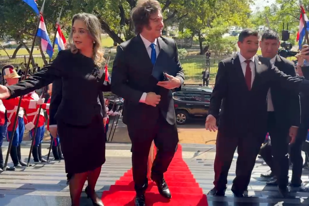 A las 10.20, el Presidente y la secretaria general de la Presidencia, Karina Milei llegaron al Congreso paraguayo. En la puerta los esperaban legisladores de distintos partidos para saludarlos. Milei compartió el estrado con el presidente de la Cámara de Diputados, Raúl Latorre, y el presidente de la Corte Suprema de Paraguay, César Diesel. Latorre, que lo precedió en el uso de la palabra, lo elogió como “un presidente que apuesta a las ideas de la libertad”, y elogiaron “las valientes medidas que tomó, que están dado resultados”. El otro legislador que habló, Basilio Nuñez, recordó la hiperinflación de Argentina en el gobierno de Raúl Alfonsín, y destacó que hoy “se están plantando en favor del equilibrio fiscal”.