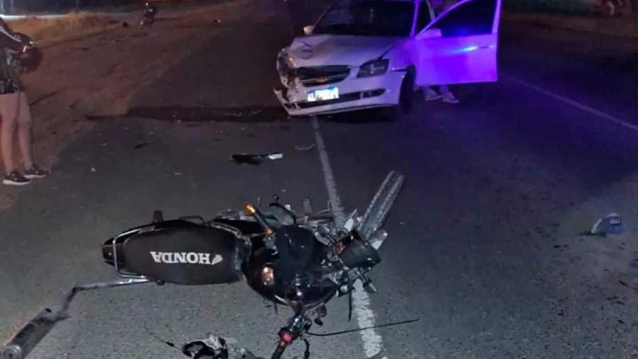 El choque se produjo contra la parte frontal derecha del automóvil, lo que provocó que ambos ocupantes de la moto quedaran inconscientes sobre la cinta asfáltica.