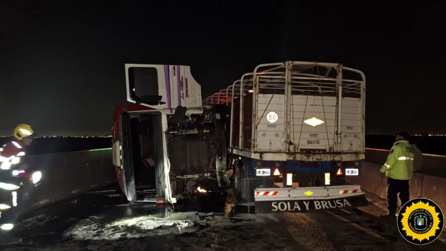 En la madrugada de este jueves, se produjo un violento accidente de tránsito en el puente Victoria-Rosario, que resultó en dos heridos graves. Un camión que transportaba animales colisionó de frente con un vehículo utilitario.
