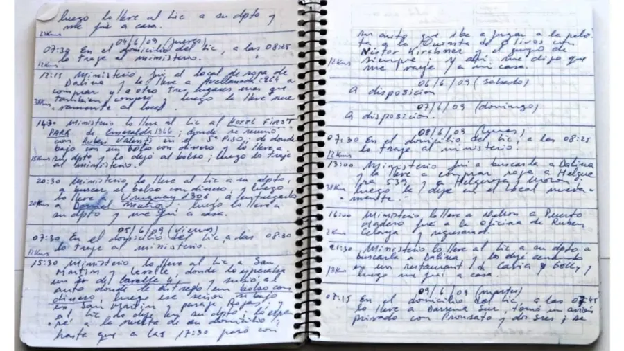 Buena parte de esos viajes y visitas que implicaron retornos y remesas de dinero fueron asentados en las anotaciones del chofer Oscar Centeno.