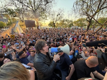 Subido a la parte de atrás de una camioneta y megáfono en mano, Milei pidió a sus seguidores “no aflojen porque la libertad avanza o la Argentina retrocede”.
