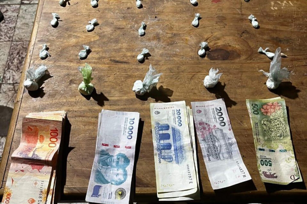 Entre los objetos secuestrados, destaca la suma de 1.742.000,00 pesos en efectivo, cinco teléfonos celulares y una balanza digital, entre otros elementos comúnmente relacionados con el fraccionamiento y la comercialización de drogas.
