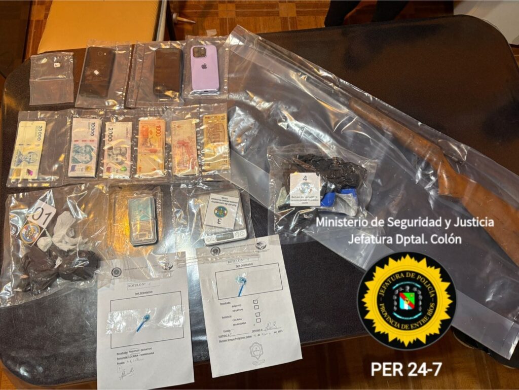 Los procedimientos se llevaron a cabo durante la tarde del miércoles y dieron resultados positivos: se secuestraron siete teléfonos celulares, una considerable suma de dinero en efectivo, prendas de vestir y guantes que se habrían utilizado durante el robo, un automóvil Volkswagen Virtus, una carabina calibre .22 y, en uno de los hogares allanados en San José, se encontró además una cantidad significativa de clorhidrato de cocaína, elementos de corte y dos balanzas de precisión.