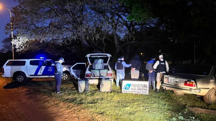 Efectivos de la Prefectura Represa Salto Grande advirtieron dos vehículos sobre la costa argentina y un bote motor en las inmediaciones. Desde uno de los automóviles se descargaban bultos; al advertir la presencia policial, la embarcación logró fugarse hacia la costa uruguaya. El episodio ocurrió este martes.