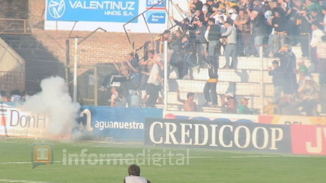 <b>De la Redacción de INFORME DIGITAL</b>En medio del partido disputado entre Patronato y Rosario Central, por la 8ª fecha de la B Nacional, este viernes en la capital entrerriana, se sucedieron varios incidentes y la violencia se volvió protagonista por momentos. En ese marco, al finalizar el primer tiempo del encuentro que el local ganó por 2 a 1, hinchas del equipo visitante exhibieron una bandera sustraída a los rojinegros. Ello generó algunas grescas, en el intento de los simpatizantes de Patronato por recuperar el “trapo”. A raíz de ello, intervino la policía, que llegó a disparar balas de goma para dispersar a quienes formaban parte de los hechos de violencia, situación en la que fueron lesionados dos agentes del orden. También hubo inconvenientes al finalizar el partido, con la hinchada local.Ante esto, el jefe de la Policía de Entre Ríos, Héctor Massuh llegó al estadio Presbitero Grella para dialogar con los encargados del operativo. Al respecto, el funcionario policial señaló que “hubo un pequeño incidente en la tribuna local, al finalizar el partido, por el tema de las banderas, pero ya está todo arreglado”. De igual modo, aseveró que el balance del operativo “fue positivo. Lamentablemente, tenemos dos funcionarios lesionados, nada más, que fue en el incidente del primer tiempo, cuando se produce un desplazamiento de los hinchas de Central”.A su vez, relató que los incidentes comenzaron cuando “los hinchas de Central exhibieron una bandera que era de acá, del club. Por lo que tengo entendido se la habían quitado en Rosario, la última vez que fueron”. En tanto, explicó que luego del partido no se registraron ningún tipo de problemas en las zonas aledañas.