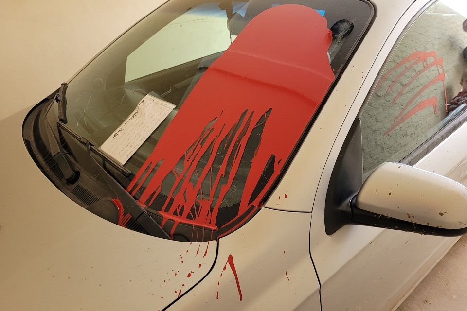 Wasler compartió una fotografía de los daños provocados en su vehículo particular. Además, también mancharon la vivienda familiar y dejaron una carta anónima.