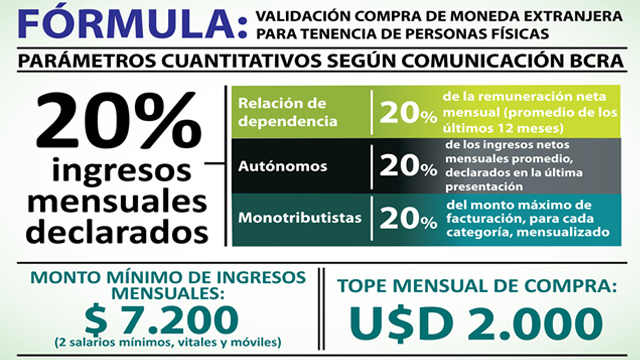 El Gobierno nacional oficializó este lunes la percepción del 20{10b083c464b21a2e5b96ab7d1950c6efda5949816d8d4b699d6508628a11a647} a cuenta del Monotributo y del impuesto a las Ganancias en la compra de divisas para tenencia por parte de personas físicas y dispuso que la retención no se aplicará cuando la moneda extranjera sea depositada, por un lapso no inferior a 365 días, en una cuenta de una entidad financiera. La medida fue dispuesta a través de la resolución general 3583 de la Administración Federal de Ingresos Públicos (AFIP), publicada en el Boletín Oficial, y se enmarca en la decisión del Poder Ejecutivo de volver a permitir la adquisición de divisas para atesoramiento, anunciada el viernes por el jefe de Gabinete, Jorge Capitanich, y el ministro de Economía, Axel Kicillof. El jefe de Gabinete de ministros Jorge Capitanich y el titular de la Administración federal de ingresos públicos (Afip) Ricardo Echegaray, brindaron una conferencia de prensa en la que dieron algunos detalles en cuanto a los aspectos operativos, requisitos y límites para la compra del llemado "dólar ahorro".<iframe width="410" height="249" src="//www.youtube.com/embed/CWniFfkOqd0" frameborder="0" allowfullscreen></iframe>"Establécese un régimen de percepción del 20{10b083c464b21a2e5b96ab7d1950c6efda5949816d8d4b699d6508628a11a647} que se aplicará sobre las operaciones de adquisición de moneda extranjera efectuadas por personas físicas para tenencia de billetes extranjeros en el país de acuerdo a las pautas operativas que, en el marco de la política cambiaria, determine el Banco Central de la República Argentina (B.C.R.A.)", señala en su artículo 1º. No obstante, la normativa aclara que "no será aplicable la percepción cuando la moneda extranjera adquirida sea depositada, por un lapso no inferior a 365 días, en una cuenta de una entidad financiera comprendida en la Ley N° 21.526 y sus modificaciones, a nombre del adquirente de la misma y conforme el procedimiento que establezca el Banco Central de la República Argentina". "En el supuesto de que la moneda extranjera adquirida y depositada se retire antes del plazo de 365 días, la percepción se aplicará en oportunidad de su retiro de la cuenta bancaria respectiva", añade el artículo 1º de la resolución general. Asimismo, en el artículo 2º establece que "la percepción que se practique por el presente régimen se considerará pago a cuenta de los tributos que, para cada caso, se indica a continuación: a) Personas Físicas adheridas al Régimen Simplificado para Pequeños Contribuyentes (RS) y que no resultan responsables del Impuesto a las Ganancias: Impuesto sobre los Bienes Personales. b) Demás Personas Físicas: Impuesto a las Ganancias". En el artículo 3º, en tanto, la resolución de la AFIP determina que "deberán actuar en carácter de agentes de percepción las entidades autorizadas a operar en cambios por el Banco Central de la República Argentina (B.C.R.A.)" y agrega que "serán pasibles de la percepción que se establece en el presente régimen las personas físicas que efectúen las operaciones señaladas en el artículo 1°". En el artículo 4º, la normativa del organismo tributario dispone que "la percepción deberá practicarse en el momento de efectivizarse la operación cambiaria o, en su caso, en la oportunidad aludida en el tercer párrafo del artículo 1°. La nueva resolución general de la AFIP, que lleva la firma de su titular Ricardo Echegaray, recuerda en sus considerandos que "la Resolución General Nº 3.450 y su modificatoria estableció un régimen de adelanto de impuesto a las Ganancias y/o Bienes Personales respecto de ciertas operaciones". En ese marco, señala que "decisiones de política económica aplicadas por el gobierno nacional tornan aconsejable extender la utilización de esa herramienta fiscal a la adquisición de moneda extranjera efectuada por personas físicas para tenencia de billetes extranjeros en el país, de acuerdo a las pautas operativas que, en el marco de la política cambiaria, determine el Banco Central de la República Argentina (B.C.R.A.)".