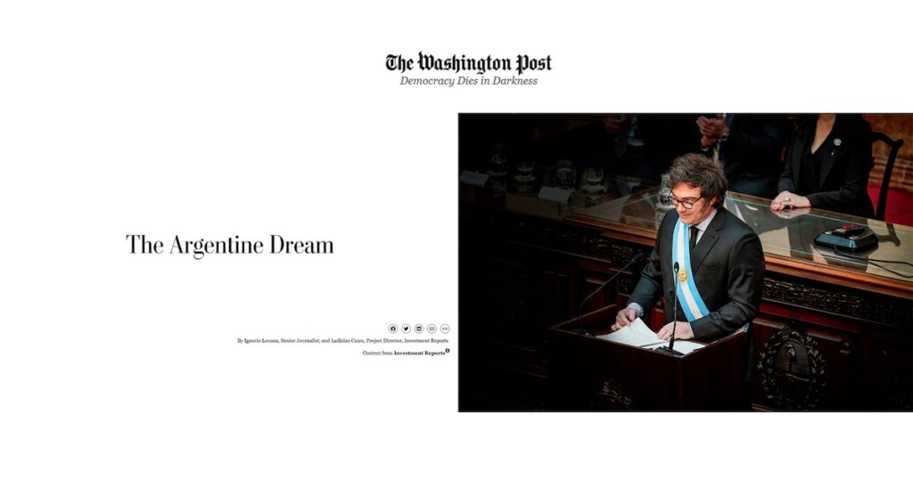 “El sueño argentino”. Así se titula un exhaustivo informe publicado en el Washington Post, uno de los diarios más importantes de Estados Unidos, que resalta los avances de la economía argentina desde la asunción de Javier Milei como presidente.