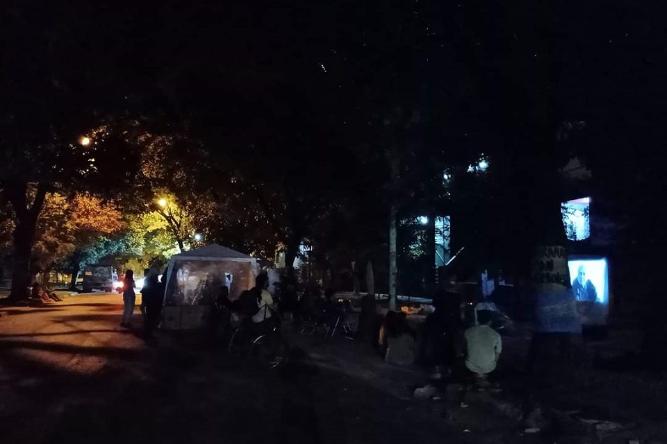 En la interpretación del personal municipal, se presume que los integrantes del ‘Acampe’ habrían desconectado una luminaria de alumbrado público para hacer un cine en la calle.