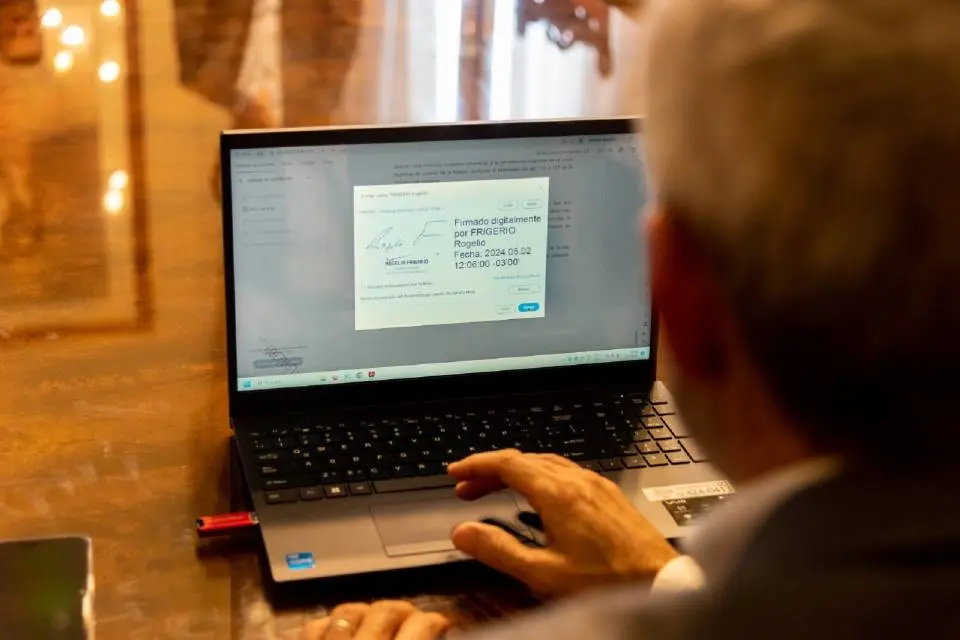 Tras el avance de la Firma Digital, entre otros implementos, Frigerio firmó un convenio para aplicar el sistema de Gestión Documental Electrónica (GDE). Actualmente en la provincia solo el 1% de los trámites se puede realizar digitalmente.