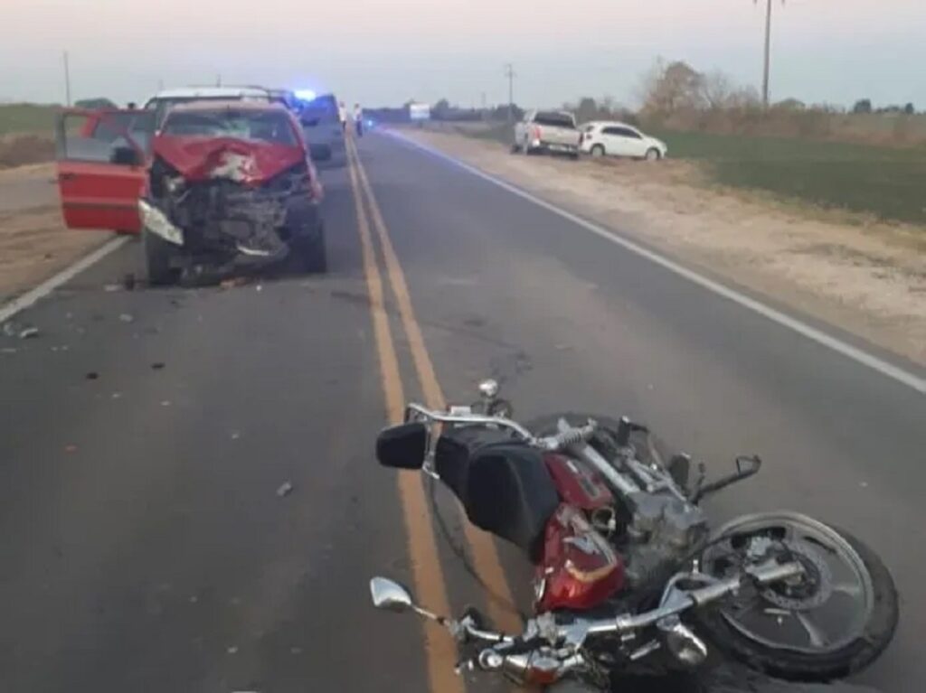Un violento siniestro vial tuvo lugar este martes por la tarde en el kilómetro 31,5 de la Ruta Nacional 131, entre Crespo y Libertador San Martín, dejando como saldo a un motociclista gravemente herido y una serie de colisiones entre varios vehículos.