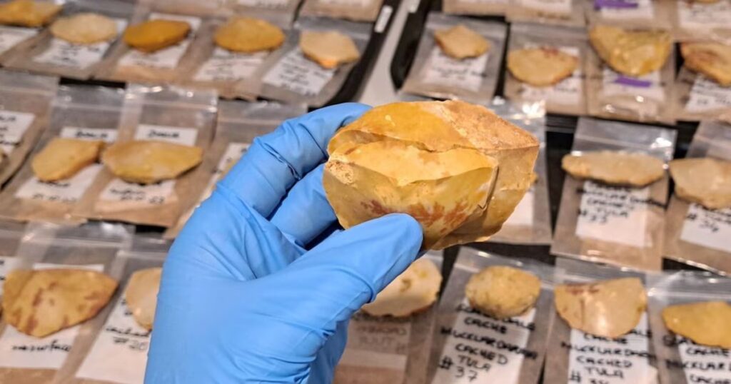 En la excavación reciente se recuperaron 60 tulas completas, evidencia que refuerza la hipótesis de que el enterramiento de lotes de herramientas fue una práctica recurrente en la región.