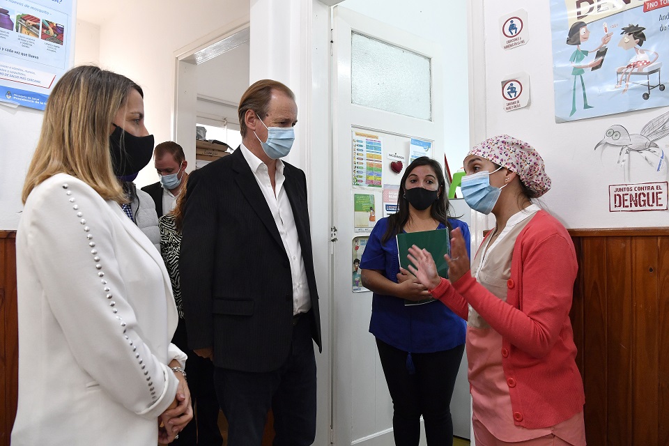 Junto al senador provincial Gastón Bagnat y demás autoridades, ambos mandatarios estuvieron en el centro de salud Fleni, donde fueron recibidos por su directora, Roxana Velis, y por la presidenta comunal, Laura Martínez, con quienes observaron el operativo de vacunación contra el Covid 19 que se inició este martes para personas mayores de 70 años. Allí también estuvo presente el director del hospital Salaberry, de Victoria, Adrián Díaz.