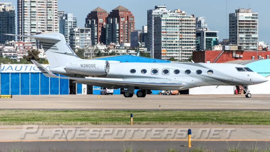 El Gulfstream N380SE es considerado el buque insignia de la flota Gulfstream: tiene capacidad para 19 pasajeros, cuatro áreas de estar diferenciadas y un alcance de 7.000 millas náuticas sin reabastecimiento. Cuenta con ventanas panorámicas ovaladas, un sistema de renovación de aire que aporta 100% de aire fresco cada dos minutos y una altitud de cabina de apenas 3.000 pies cuando está en crucero a 41.000 pies. Con esa autonomía, la aeronave puede unir sin escalas rutas como Londres-Buenos Aires, Nueva York-Tokio o Los Ángeles-Londres.