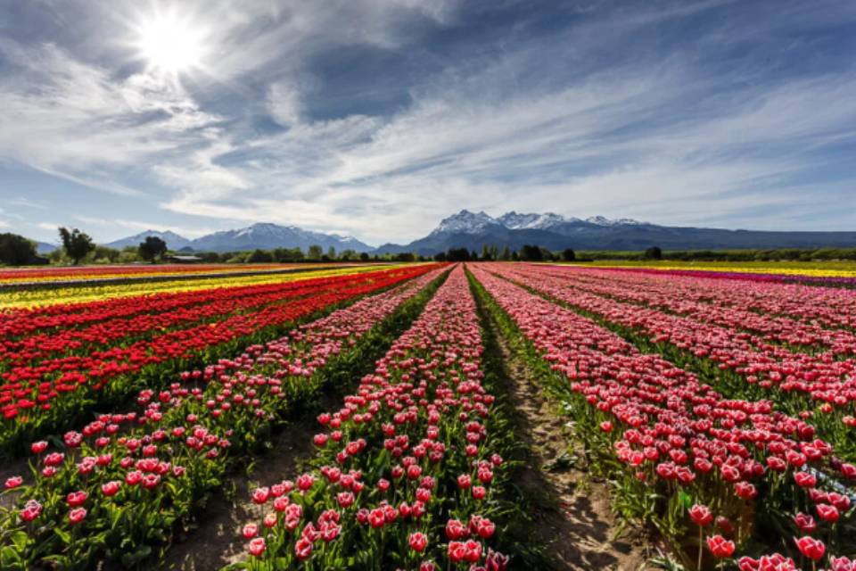 El paisaje más colorido de la Patagonia lo aporta esta localidad con su imponente Campo de Tulipanes.