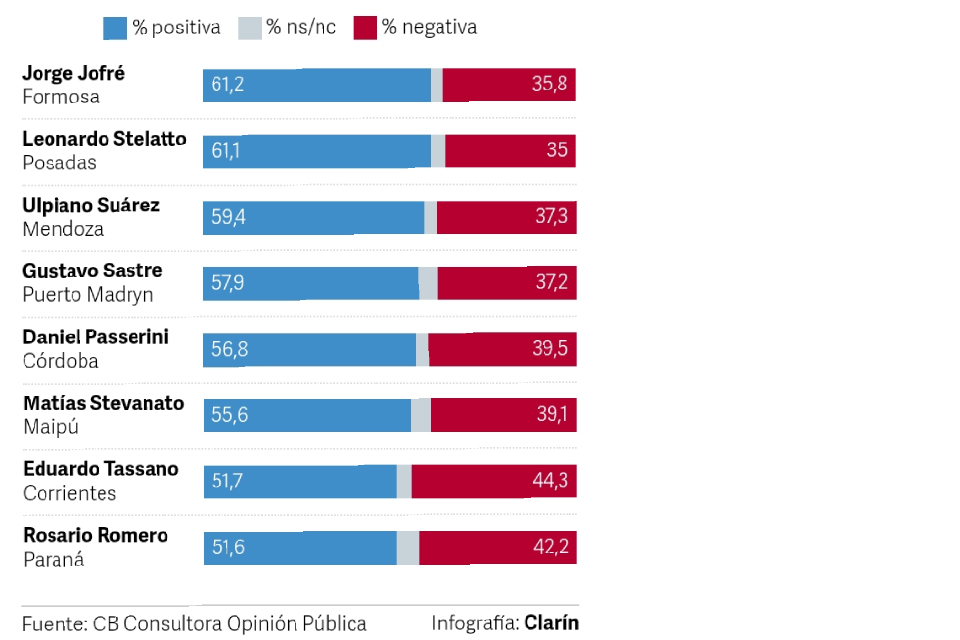 Las dos excepciones entre los “peores” son dos mujeres: Susana Laciar, de San Juan; y Rossana Chahla, de Tucumán. Ambas tuvieron más apoyo que rechazo.