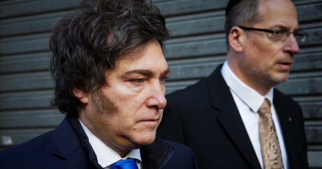 La llegada de Milei a la sede de la Asociación Mutual Israelita Argentina (AMIA) se produjo en medio de estrictas medidas de seguridad. Descendió de una camioneta Toyota negra, habitual en sus traslados, y fue recibido por las autoridades de la mutual judía.