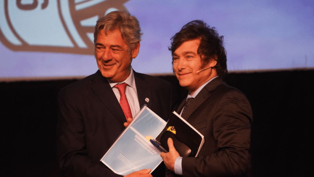 Pino es uno de los dirigentes más alineados con el discurso libertario, y promovió el comunicado “Una Argentina sin retenciones”, lanzado por la Mesa de Enlace como un mensaje al Gobierno.