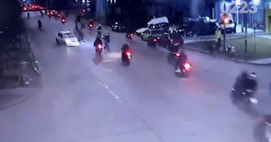 El incidente, que ocurrió en la intersección de la Avenida Fortunato de la Plaza y Talcahuano, involucró al conductor de un Chevrolet Corsa Classic blanco y una caravana que, según medios locales, contaba con alrededor de cien motocicletas. El impacto fue registrado tanto por cámaras de seguridad como por videos captados por transeúntes, lo que permitió reconstruir parte de los hechos que condujeron al trágico desenlace.