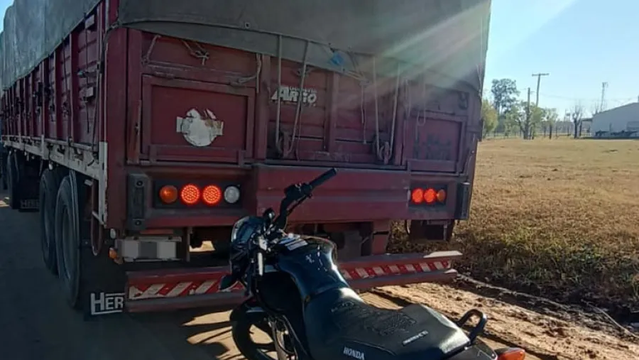 En el lugar, una motocicleta Honda CG 150 CC, transportando a dos hombres, colisionó desde atrás contra un camión Volkswagen 17220 que circulaba en la misma dirección (ambos por la calle Garat).