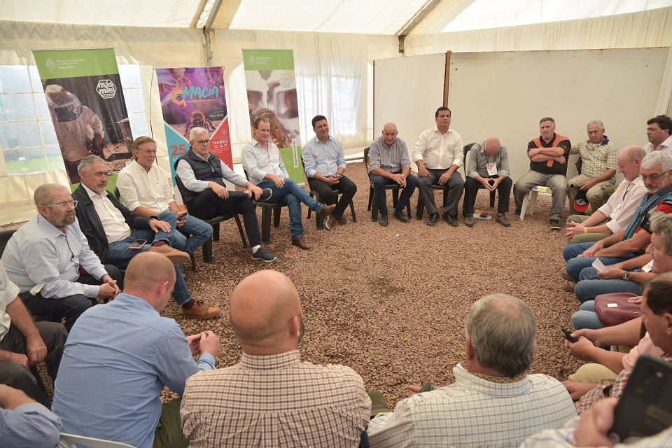 En la visita del ministro de Agricultura Julián Domínguez a la Expo Maciá se confirmó la asistencia afectados por la sequía y los incendios. Junto al gobernador también escucharon las inquietudes del sector.