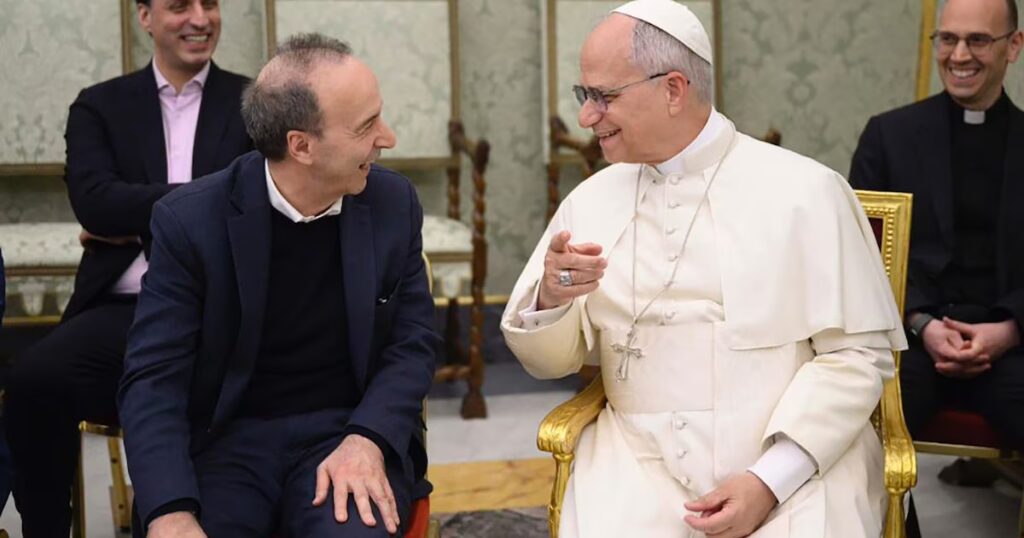 El jueves pasado, el papa León XIV recibió al actor y director italiano Roberto Benigni en el Palacio Apostólico del Vaticano.
