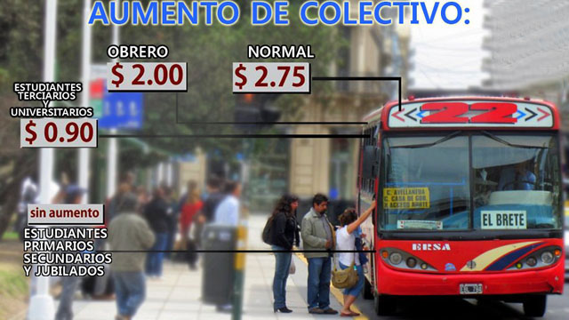 El boleto urbano de colectivos tendrá un incremento que no alcanza el 18 por ciento en su totalidad. Aclararon que no habrá aumento para estudiantes primarios, secundarios y jubilados.