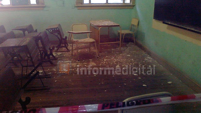 <b>De la Redacción de INFORME DIGITAL</b>Lo que afortunadamente es una anécdota más, bien pudo ser una tragedia. En la Escuela Normal de la capital entrerriana, se cayó parte de la mampostería del techo de un aula, luego de las precipitaciones que se dieron durante este viernes. El hecho ocurrió alrededor de las 16:15, cuando, literalmente, un pedazo del techo cayó sobre el escritorio en el que, hasta las 16, docentes dieron clases a estudiantes. Cabe recordar que el edificio de la Escuela Normal es una de las que se encuentra en estado de refacción y cuyas obras se han visto atrasadas. A propósito, el ministro de Eduación provincial, José Lauritto había señalado días atrás que en cuestiones de infrestructura escolar existen “dificultades, en dos aspectos: uno es cuando se realizan las obras y quizás se retrasan en su culminación por diferentes razones, a veces porque hay un retraso en los pagos, o por ampliaciones que solicita el propio establecimiento. El otro esquema que genera dificultades es en establecimientos que no están en obra y tienen que ver con su adecuado mantenimiento”. Asimismo, el ministro había explicado que “el sistema educativo convive con escuelas que tienen un criterio del siglo XIX, docentes formados en el siglo XX y alumnos que demandan desde el siglo XXI. Hay que aceptar esta realidad”. Tras ello, docentes de diferentes escuelas de la provincia se manifestaron frente a la Casa de Gobierno provincial, reclamando por problemas edilicios y demandando soluciones. En ese sentido, el secretario de Prensa del gremio en la capital provincial, Ignacio González Lowy, afirmó que “hay muchísimas escuelas que cada vez que caen dos gotas dejan de funcionar, que tienen cursos que deben turnarse para poder dar clases”.