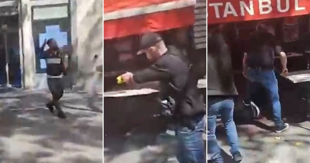 Otro testigo ocular declaró a la AFP que el hombre sostenía “dos grandes cuchillos de carnicero”.