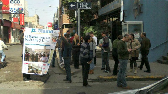 <b>De la redacción de INFORME DIGITAL</b>La situación de los trabajadores de El Diario de Paraná sigue sin solución. El conflicto se desató ante el retraso y el pago en cuotas de los salarios. Por tal motivo, los empleados gráficos efectuaron un paro de dos días -y continúa- que llevó a que el periódico no saliera a la calle.No obstante, este jueves El Diario apareció en una edición de sólo 16 páginas. La versión de emergencia fue decidida por la administración. Hasta este miércoles por la noche existía la posibilidad de que este jueves no vuelva a salir.Este miércoles, Marcelo Ortiz, al frente del Sindicato de Trabajadores Gráficos, informó que los empleados están de paro (la llevan dos días y continúa), sin ninguna respuesta a su reclamo. “El abogado del Ministerio (de Trabajo) nos atendió con muy buena voluntad y nosotros expusimos la situación que estamos atravesando, no vamos a permitir el pago desdoblado, el paro lo vamos a levantar cuando nos paguen el ciento por ciento del salario”, sostuvo. En declaraciones a LT14, Ortiz indicó que aguardan por una respuesta por parte de la empresa y como no han obtenido ninguna comunicación favorable se acercaron al Ministerio de Trabajo para plantear el problema y solicitar su apoyo.