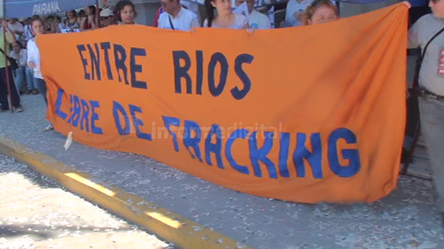Durante la mañana de este jueves se realizó una actividad contra la posible utilización del método fracking en Entre Ríos.Participaron diversos movimientos sociales, gremiales y políticos del campo popular, tales como el movimiento Entre Ríos libre de Fracking, Proyecto Sur, MST Entre Ríos, FAP Entre Ríos, Partido Socialista, Coalición Cívica ARI, Agmer Paraná, CTA Paraná, Programa de Extensión por una nueva economía de UNER. En primer lugar, se realizó una intervención artística en la Secretaría de Energía de la provincia, para reclamar a su titular, Raúl Arroyo, que responda un pedido de informe sobre la posibilidad de realizar perforaciones con métodos no convencionales para extraer hidrocarburos.Durante el reclamo el equipo de filmación de Fernando Pino Solanas, tomó imágenes para su próximo documental que girará en torno de la problemática del fracking y sus consecuencias nocivas para el ambiente.Luego la concentración marchó hacia el edificio de tribunales de Paraná, donde se presentó un recurso de amparo para evitar la aplicación de fracking en la provincia. Dicha presentación fue realizada por Hugo Rivas, presidente de Proyecto Sur Paraná y fue acompañada por Fernando Iturriza y Jorge Signorelli del movimiento Entre Ríos Libre de Fracking, así como Alejandra Gervasoni, Secretaria General de Agmer Paraná.