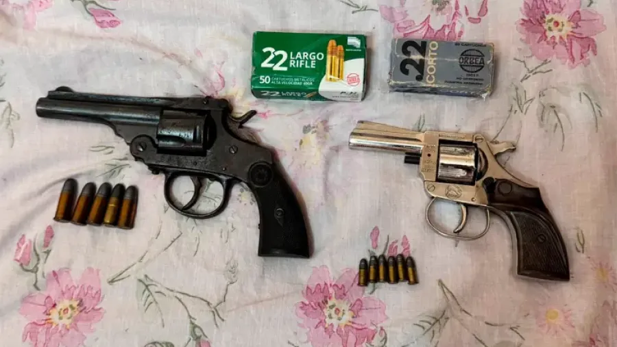 Según detallaron, entre los elementos secuestrados se halló un revólver calibre .38 corto con cinco cartuchos del mismo calibre; un revólver calibre .22 corto con seis cartuchos; una caja con 32 cartuchos calibre .22 corto; otra con 50 cartuchos calibre .22 largo rifle (LR); y tres teléfonos celulares. También se secuestró documentación médica del occiso relacionada con enfermedades cardíacas y pulmonares.