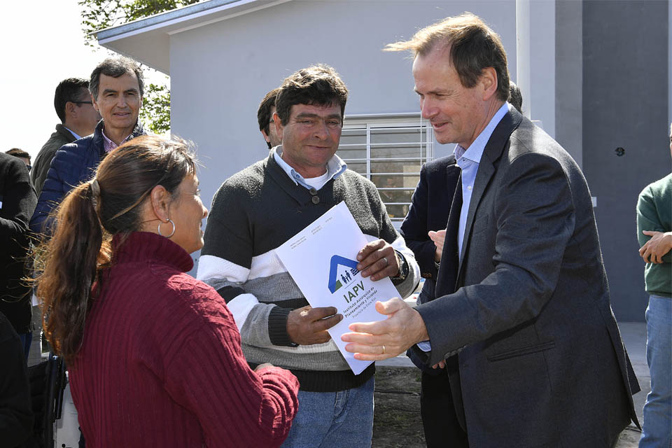 En San Gustavo el mandatario entregó viviendas que fueron financiadas íntegramente con recursos provinciales, según indica el comunicado oficial enviado a INFORME DIGITAL, y firmó convenios para la construcción de 10 casas en Piedras Blancas y 26 en La Paz, en el marco del programa Primero tu Casa.