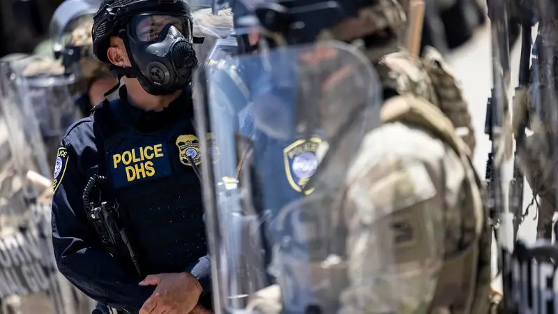 Las fuerzas del orden utilizaron gas pimienta y lacrimógeno contra la multitud reunida ante el Centro de Detención Metropolitano, tratando de dispersar a los manifestantes que confrontaban a la Guardia Nacional, el ICE y el DHS.
