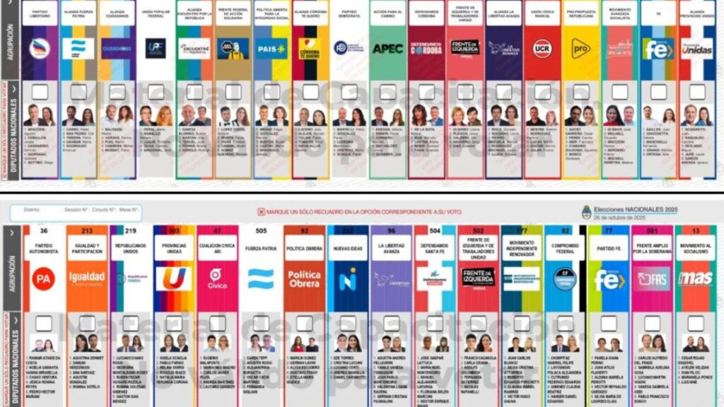 En estas jurisdicciones, la Boleta Única de Papel mostrará dos categorías diferenciadas: una para diputados y otra para senadores, manteniendo el mismo diseño de columnas con los partidos y casilleros para marcar la preferencia. De esta forma, el votante podrá optar por todos los candidatos de una misma fuerza o combinar nombres entre distintos espacios políticos.