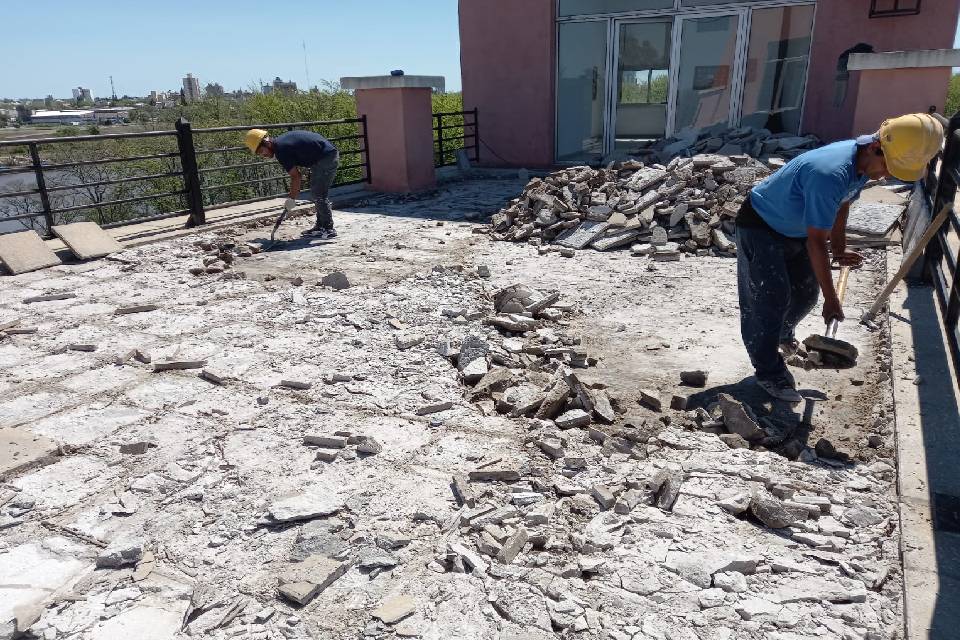 En la terraza mirador, se levantó tanto piso como contrapiso. Las tareas realizadas y las proyectadas forman parte de una iniciativa que fue aprobada por el Concejo Deliberante.
