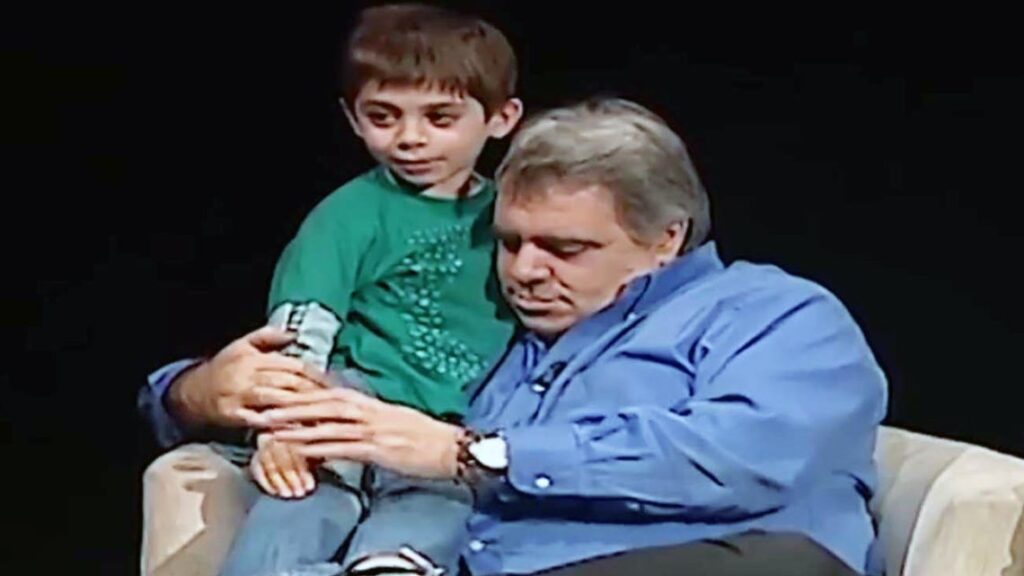 Pierri llegó al estudio acompañado por su esposa y por su hijo de siete años. La esposa permaneció fuera de cámara. El chico, colgado del cuello de su padre, se acomodó en el apoyabrazos del sillón que ambos ocuparon. Tras un par de preguntas apareció la esperada: “¿Mangeri es inocente, sí o no?”. Pierri comienza a responder: “Mangeri es un señor inocente que está pasando el peor momento de su vida…”. El chico se sobresalta, mira a la cara de su padre y dice: “Pero boludo, mató a Angeles”.