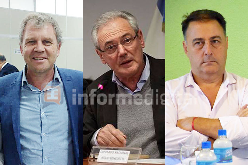 Los tres candidatos a gobernador de Cambiemos: Benedetti, Galimberti y Lacoste.