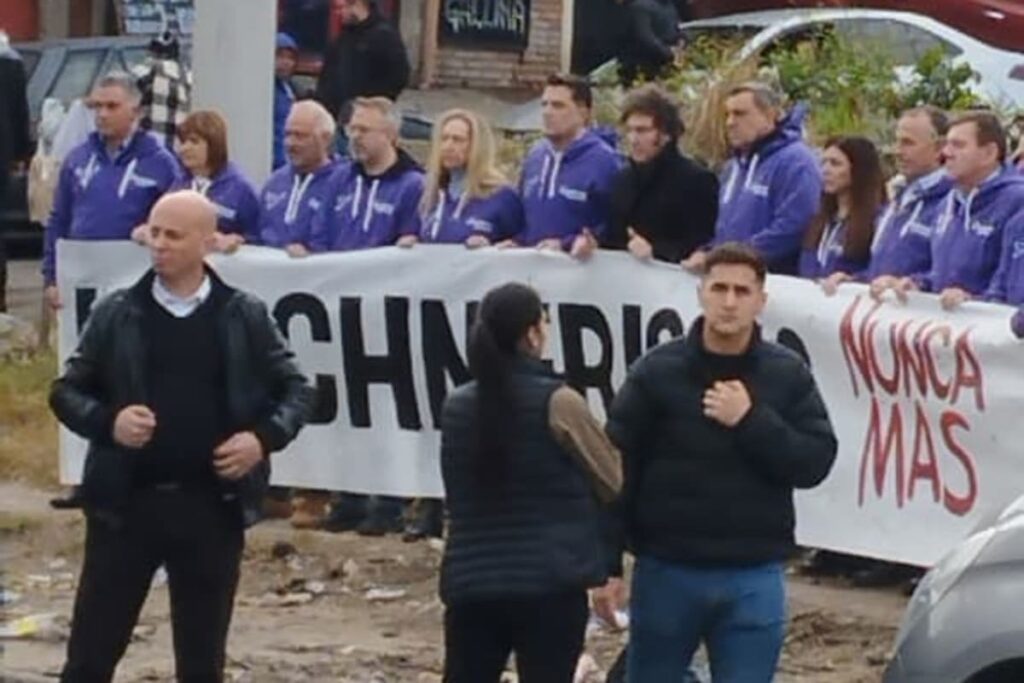 En esos minutos, Milei saludó a algunos vecinos. En medio del dispositivo de seguridad, no hubo insultos, ni contratiempos. El Presidente se tomó la foto en un descampado barroso, junto a los candidatos, Karina Milei, Patricia Bullrich y Cristian Ritondo, que no tuvo pruritos para calzarse el buzo violeta. “Kirchnerismo Nunca Más”, fue el eslógan escrito la bandera que sostenían entre todos. Una provocación que se valió de la tipografía del informe de la Comisión Nacional sobre la Desaparición de Personas (Conadep) de 1984. En la Casa Rosada ni se inmutaron por la polémica por la banalización del trabajo que recopiló las desapariciones de la última dictadura. “Cosas de zurdos”, respondió más de uno. Pero en el búnker nacional de Pro generó algunos ruidos. “¿Cuál es la búsqueda?”, se preguntó un colaborador de los amarillos.