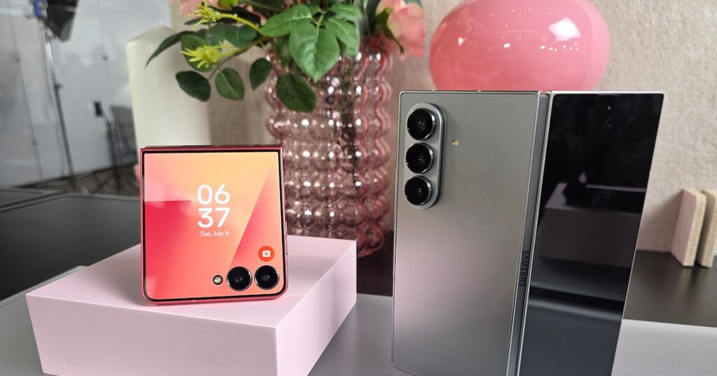 El Flip es el modelo que se pliega verticalmente, evocando a los antiguos teléfonos “con tapita”, pero su interior es completamente pantalla y la parte exterior también cuenta con un display potente y muy práctico. El Fold, en cambio, se despliega como un libro, lo que resulta en un dispositivo que, visto por fuera, tiene la apariencia de un teléfono convencional. Sin embargo, al abrirlo, se revela una pantalla del doble de tamaño, ideal para juegos y contenido multimedia.