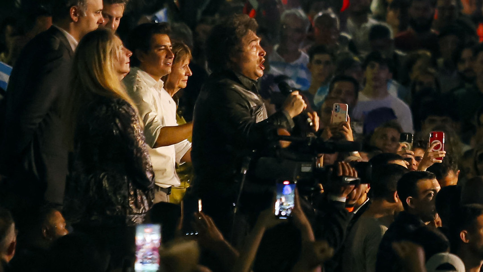 Ya absolutamente decidido a repetir la estrategia cambiemita de confrontar de forma directa con el kirchnerismo, que no le dio buenos resultados en la provincia de Buenos Aires, el propio Milei cantó desde el micrófono que “saquen al pingüino del cajón”.