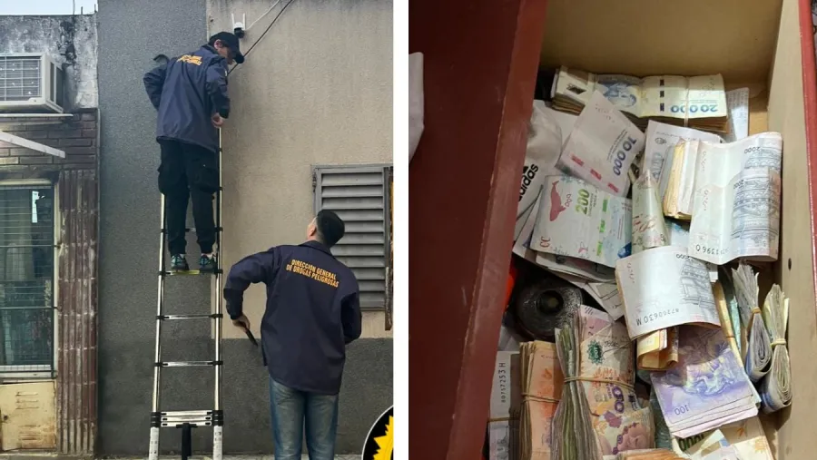 Respecto a los elementos incautados, se informaron: envoltorios de cocaína y marihuana, 800 dólares, 70.000 pesos en billetes falsos, 1.775.750 pesos, una balanza con restos de cocaína, cámaras de seguridad, recortes varios y precintos, un arma de fuego, cartuchos de calibre 9 milímetros, celulares, entre otros.