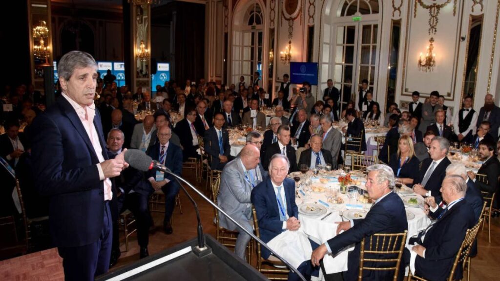 El ministro se sentó sólo unos minutos en la mesa principal al lado de Bettina Bulgheroni y del dueño de Corporación América, Eduardo Eurnekián. También estaban el titular de la Unión Industrial Argentina (UIA), Martín Rappallini; el dueño de Cabrales, Martín Cabrales; el titular de la Cámara Argentina de la Construcción (Camarco), Gustavo Weiss, el presidente de Pan American Energy (PAE), Alejandro Bulgheroni; Mario Grinman, y el ministro de Relaciones Exteriores, Pablo Quirno. El exsecretario de Finanzas se quedó un tiempo después a conversar con los hombres y mujeres de negocios, que se acercaban a él con una sola pregunta: “¿Cuándo se va a firmar el acuerdo con Estados Unidos?”.
