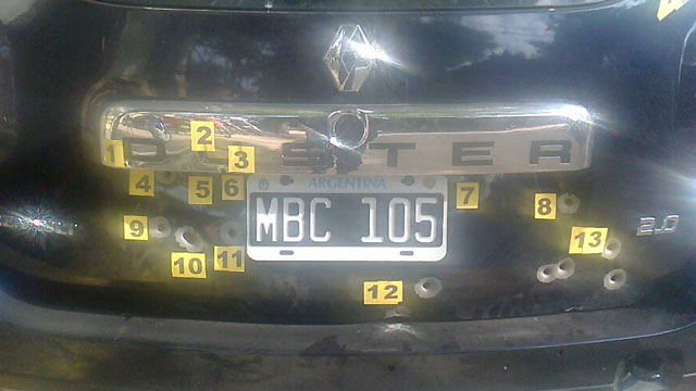<b>De la redacción de INFORME DIGITAL</b>Un grupo de cuatro inspectores de la Administración Federal de Ingresos Públicos (AFIP) que habían terminado de realizar su trabajo en Villa Elisa, haciendo control en hoteles y restaurantes, fue víctima de una balacera realizada desde un vehículo que los estaba siguiendo. Las balas impactaron en el Renault Duster en el que se transportaban los agentes del organismo nacional.Fue alrededor de las 2:00 de la madrugada de este sábado, al salir del pueblo por ruta 130 a la altura del kilómetro 11, donde son interceptados por una camioneta Toyota Hiluk blanca desde la cual se efectuaron más de 13 disparos.El subjefe de la policía departamental de Colón, el comisario inspector Mario Leiva relató a <b>INFORME DIGITAL,</b> que las personas hicieron la denuncia y luego de dar el alerta a los móviles policiales se detecta una camioneta de similares características a la descripta por los denunciantes.La policía con la presunción de que se tratase del mismo vehiculo pidió una orden de allanamiento. En la casa situada en calle Castelli de la localidad detuvieron a una hombre y una mujer, además secuestraron cuatro armas de fuego, entre ellas una escopeta calibre 1270. Leiva señaló que los cartuchos encontrados en el lugar de la balacera coinciden con la escopeta. En tanto se informó que se hicieron los trabajos periciales consistentes en pruebas de dermotest en las dos personas y en el vehículo. En la Toyota encontraron vestigios de pólvora en la zona interior y exterior.Luego se comunicó al fiscal de Concepción del Uruguay, Juan Sebastian Blanc, y este consideró, según Leiva, que “los elementos secuestrados no eran suficientes como para detener a las personas”, no obstante remarcó que desde la policía están “convencido de que los hechos han sido cometidos”. “Estamos en la presunción de que se trata de esa persona”, sostuvo el comisario.Por último manifestó que aún se investigan los motivos de por qué el sujeto habría disparado. <b>El arsenal</b>En la guantera de la camioneta encontraron una pistola Taurus con puntero láser, cal. 9mm., cargadores, un proyectil en recamara y 21 cartuchos. En la finca se secuestró una escopeta marca Maverick, cal. 12, con dos cartuchos en recamara y dos cartuchos en un mueble, en otra habitación se secuestro un Fusil Magnum, cal. 300 con mira telescópica, marca Busnhell, 73 cartuchos marca Federal, cal. 300, un revolver marca Colt, dos cartuchos cal. 44., 300 cartuchos cal. 9mm, 110 cartuchos cal. 12/70.